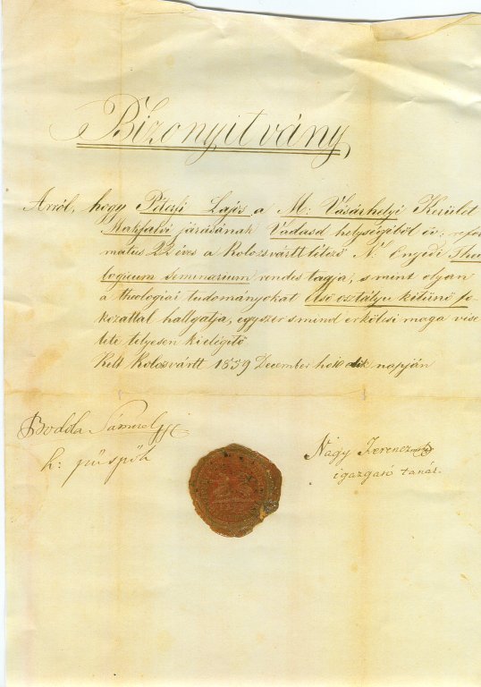Péterfi Lajos bizonyítvány