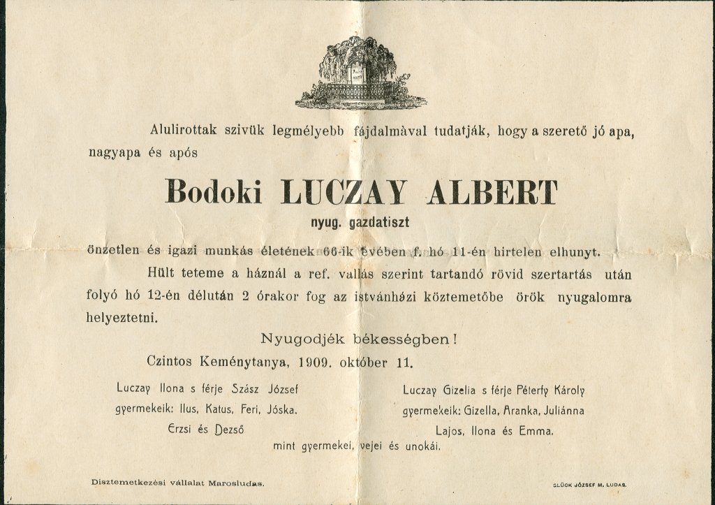 Luczay Albert gyász értesítő