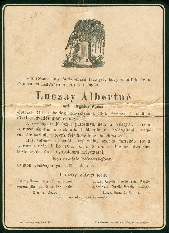 Hegedűs Ágnes gyász értesítő
