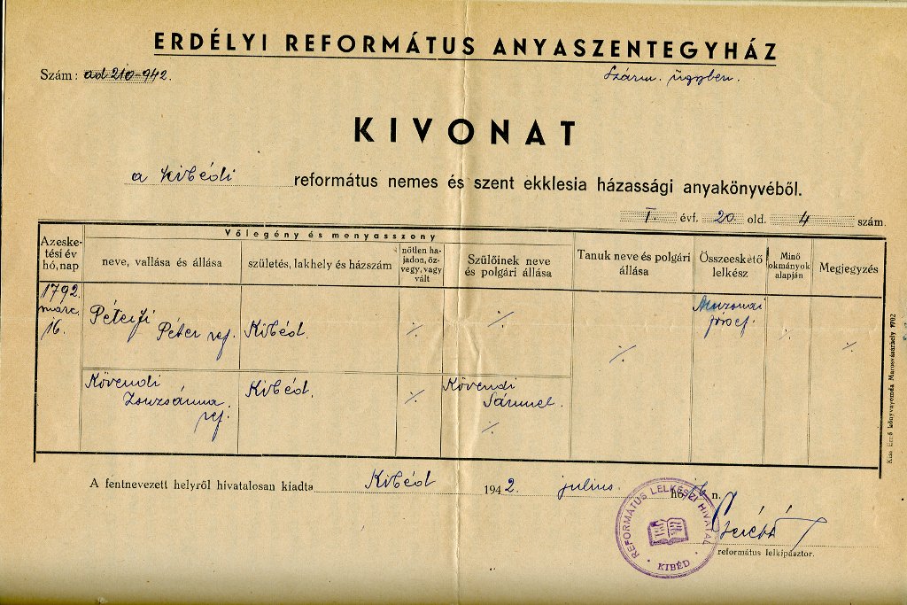 Péterfi Péter házassági anyakönyvi kivonat